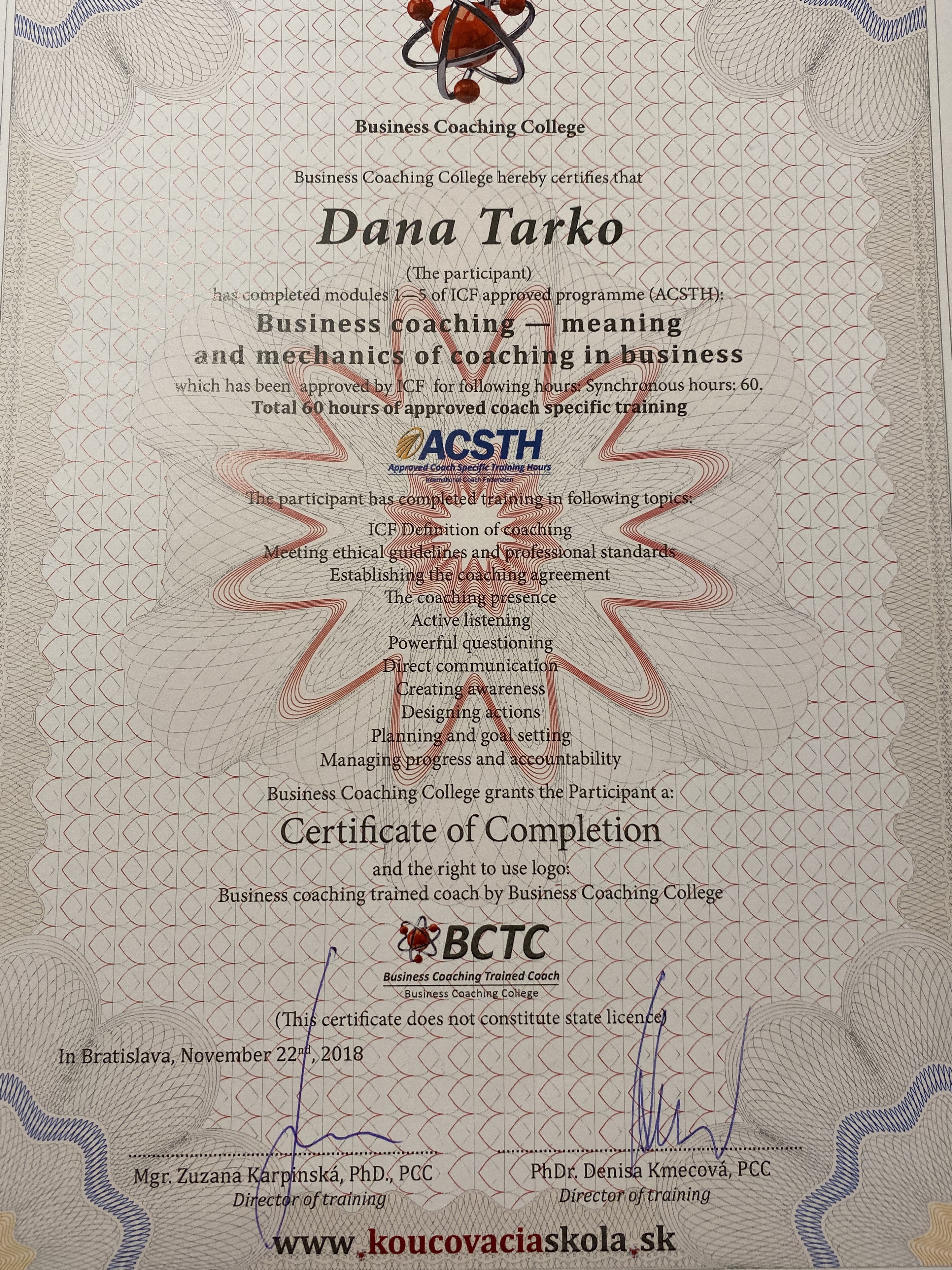 | Business coaching - Meaning and mechanics of coaching in business | Business Coaching Coleege | 60 | ICF ACSTH | 2018 | Náhled |