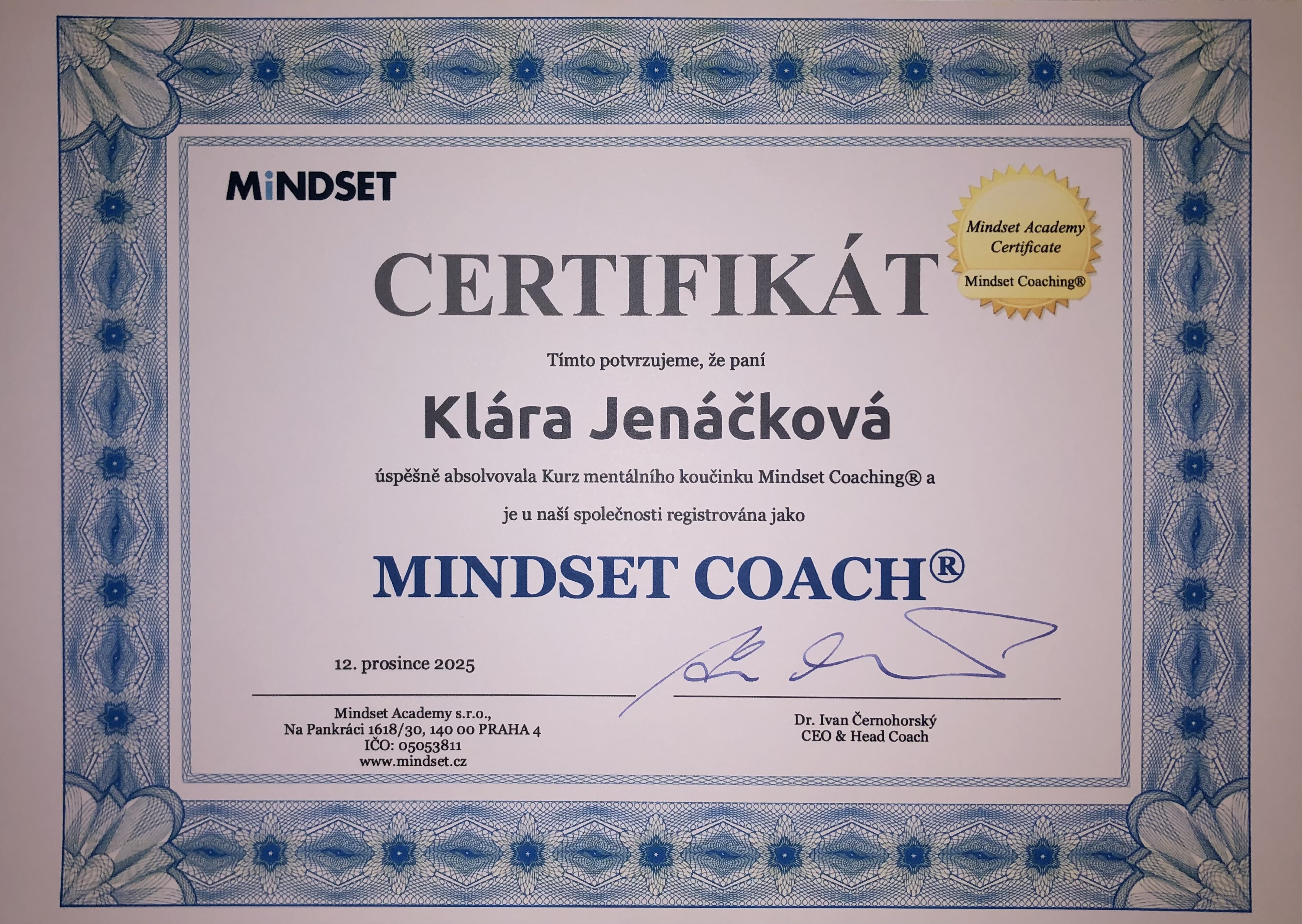 | Kurz mentálního koučinku | Mindset Academy s.r.o. | 121 | non-ICF | 2025 | Náhled |